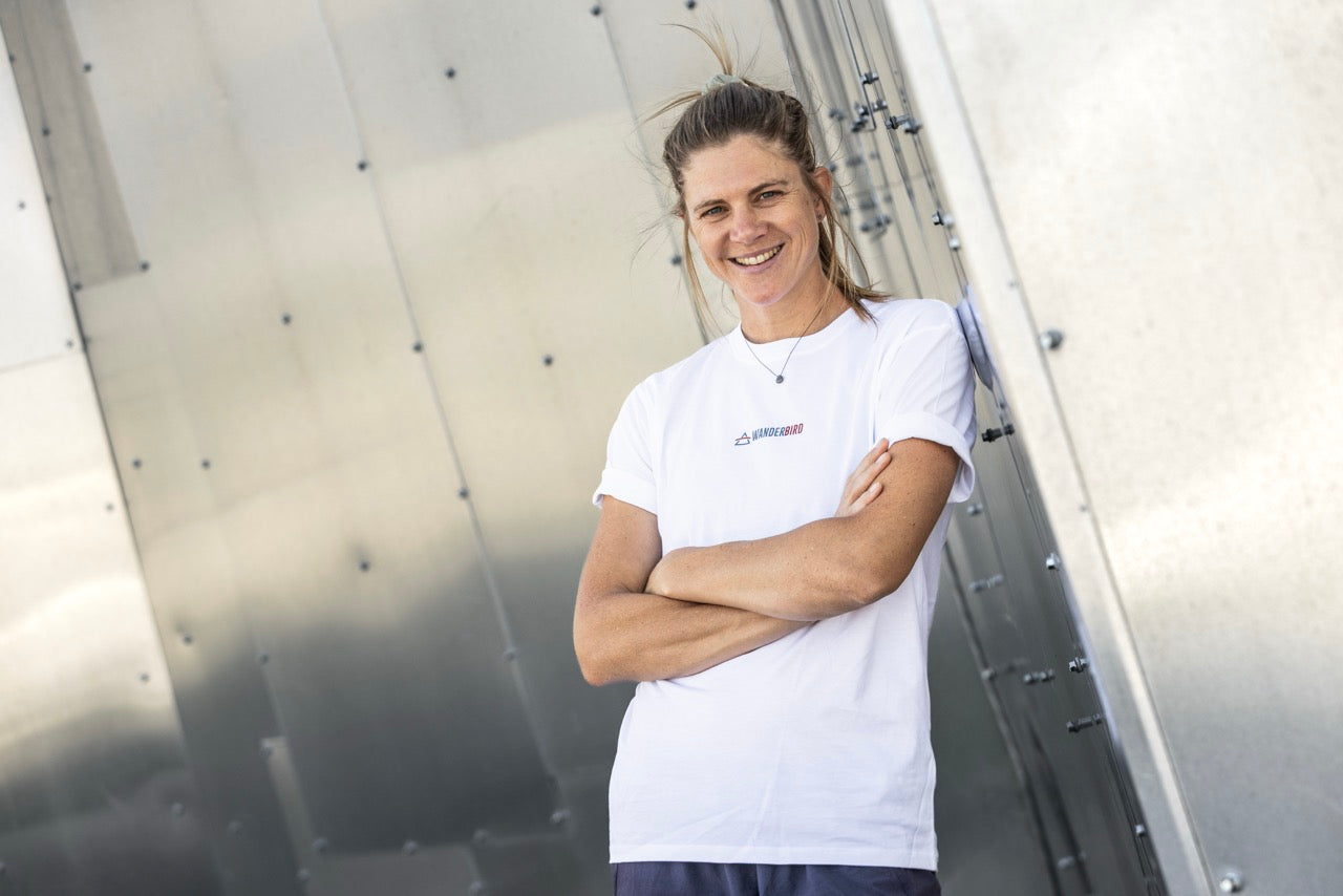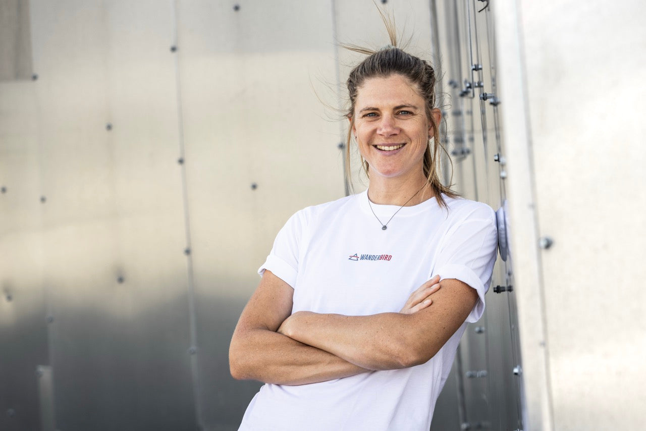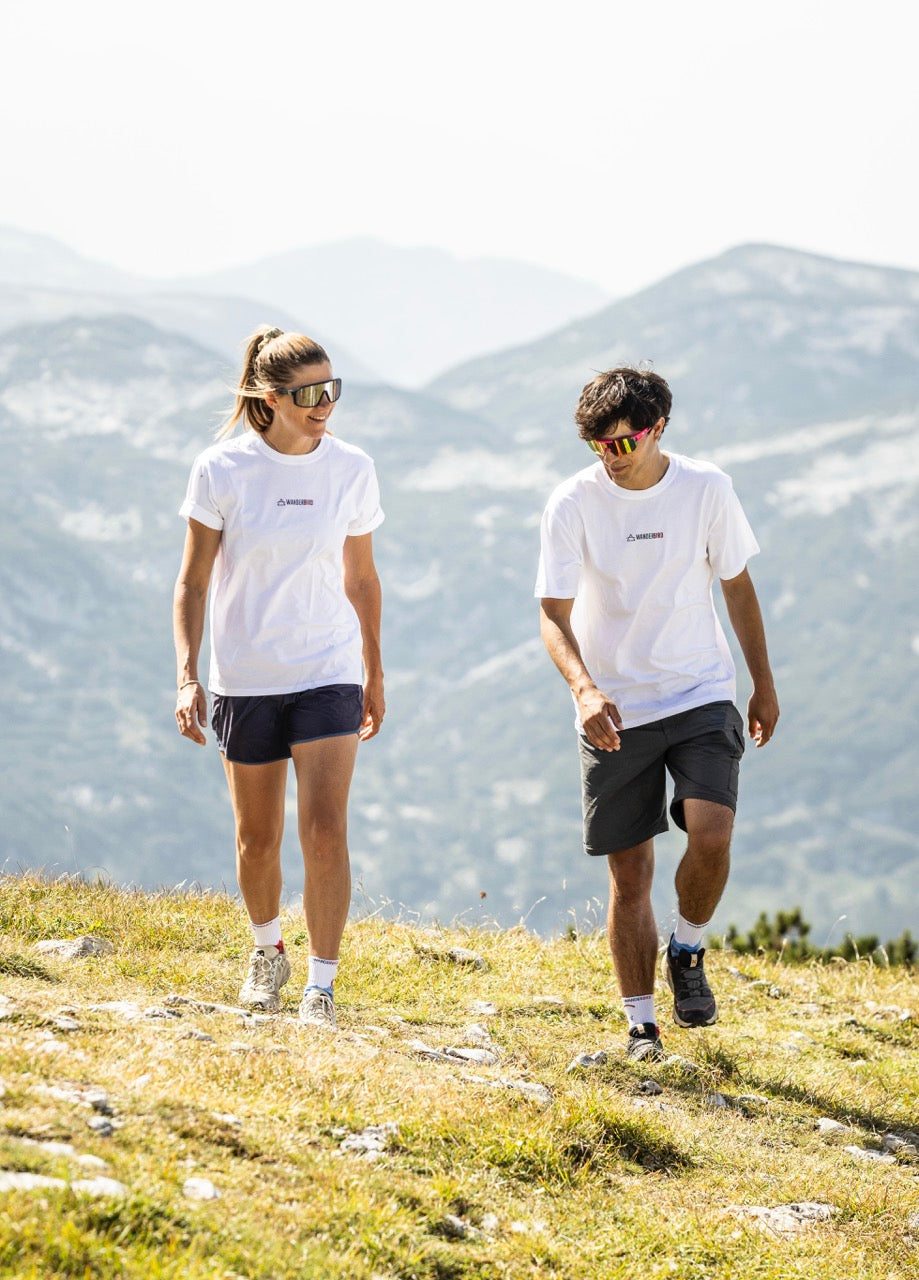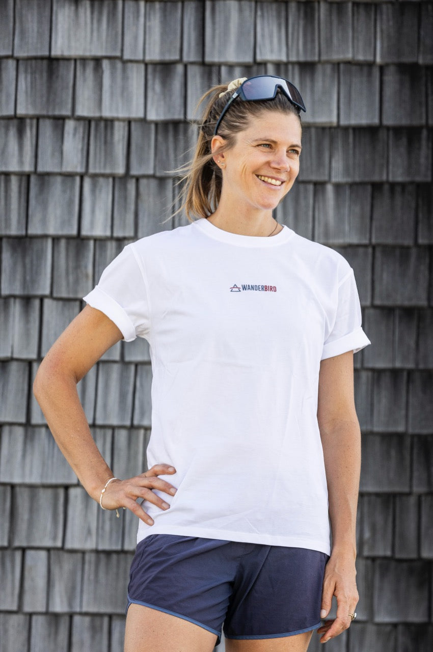 Baumwoll Shirt mit WANDERBIRD Schriftzug vorne und Hike&Fly Print hinten.