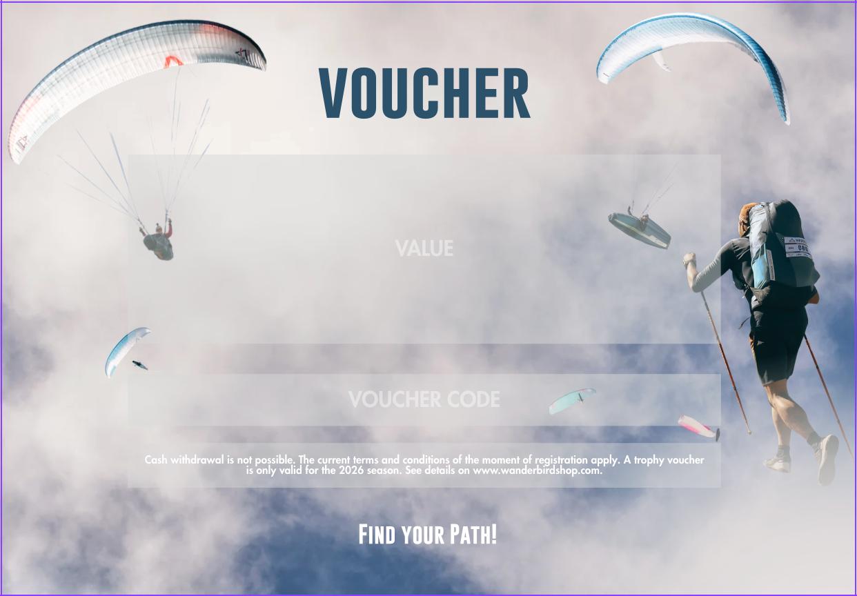 Mit dem WANDERBIRD Wertgutschein schenkst du Abenteuer. Einlösbar für unseren Shop, oder den WANDERBIRD Season Pass.
